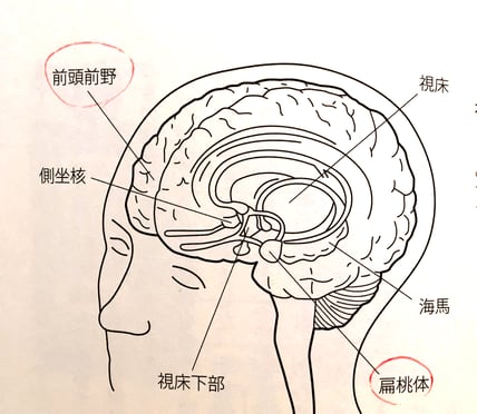 脳の中の主なポイントが2箇所あり、扁桃体と前頭前野です。